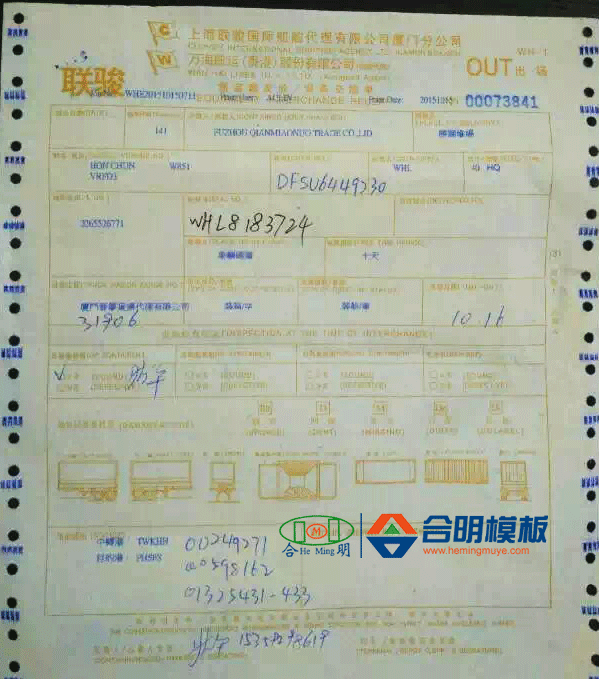 合明覆膜板出口菲律賓海運(yùn)單