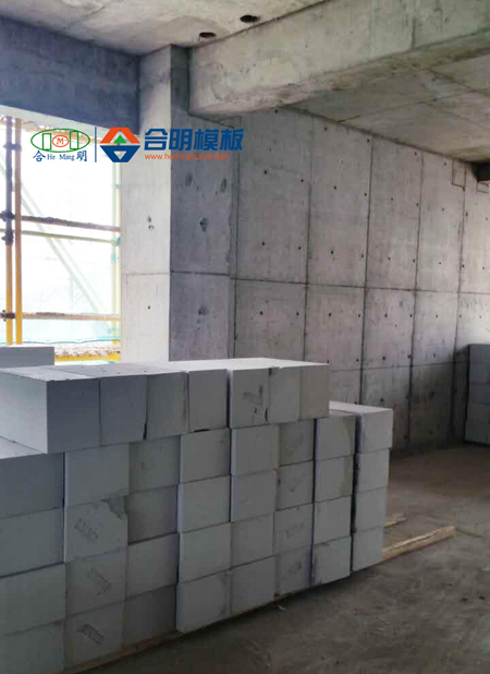 使用合明覆膜板脫模后墻體平整、潔凈、光滑