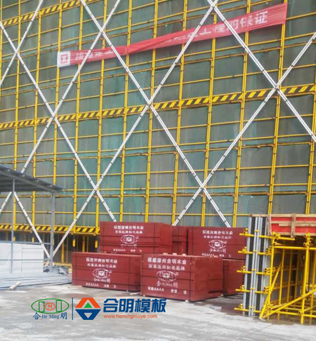 合明模板剛到貨工地現(xiàn)場(chǎng)