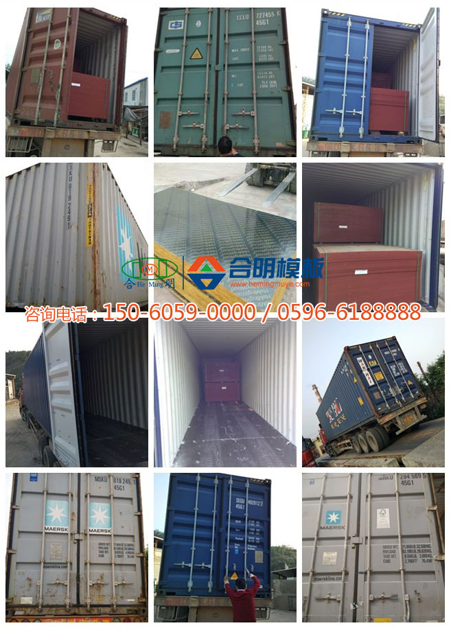 今日出口馬來西亞和印尼的11個(gè)貨柜,全部為合明英文覆膜板,規(guī)格1.22*2.44m,厚度12mm至18mm不等的建筑大板。合明覆膜建筑模板以出口標(biāo)準(zhǔn)制作,品質(zhì)卓越,防水防潮性強(qiáng),可重復(fù)使用10次以上,在東南亞熱帶多雨國家備受好評!