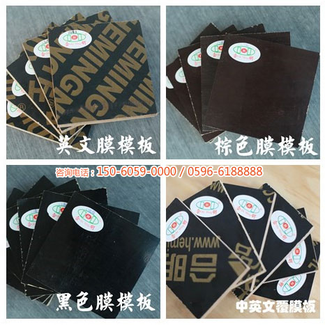 合明覆膜建筑模板有黑膜、棕膜、英文膜、中英文膜4種,規(guī)格為長×寬=1220mm×2440mm(4英尺×8英尺)、915mm×1830mm(3英尺×6英尺)兩種,厚度12mm至18mm可定制,歡迎來電咨詢洽談。