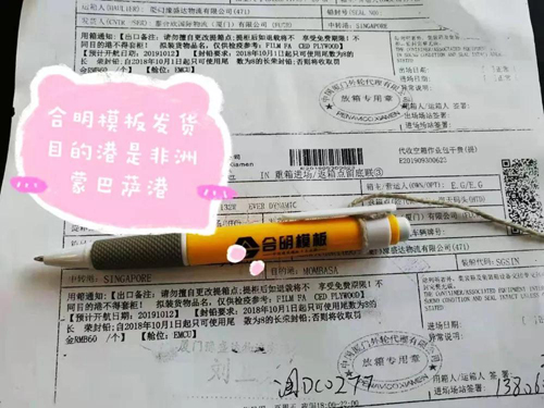 合明模板發(fā)往新加坡,建設(shè)新加坡氣化裝置技改項(xiàng)目。該項(xiàng)目由中國(guó)化學(xué)工程第三建設(shè)有限公司承建。