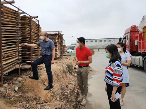 合明木業(yè)主要負(fù)責(zé)人黃志藝、黃志南陪同各位領(lǐng)導(dǎo)參觀考察了合明產(chǎn)業(yè)園,并認(rèn)真講述合明木業(yè)在近段時(shí)間內(nèi),關(guān)于疫情防控、員工返崗、進(jìn)出口業(yè)務(wù)和安全生產(chǎn)等一系列情況。來訪領(lǐng)導(dǎo)鼓勵(lì)合明迎難而上,提升企業(yè)競爭力和服務(wù)力。