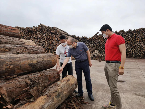 合明原木堆場,領(lǐng)導(dǎo)認(rèn)真考察原木進(jìn)口情況
