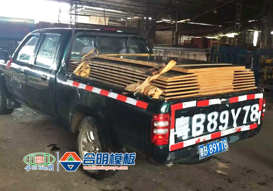 近日,廣東深圳市廖先生自駕皮卡車至合明生產(chǎn)基地參觀考察,并取樣板回去工地試驗(yàn)。這位客戶是因同行朋友向其推薦合明模板才到合明進(jìn)行考察的。來合明后覺得合明模板平整美觀,公司也規(guī)范,因?yàn)樽约簩δ0遒|(zhì)量要求很高,特跟合明購買英文覆膜板40張至工地進(jìn)行試用。