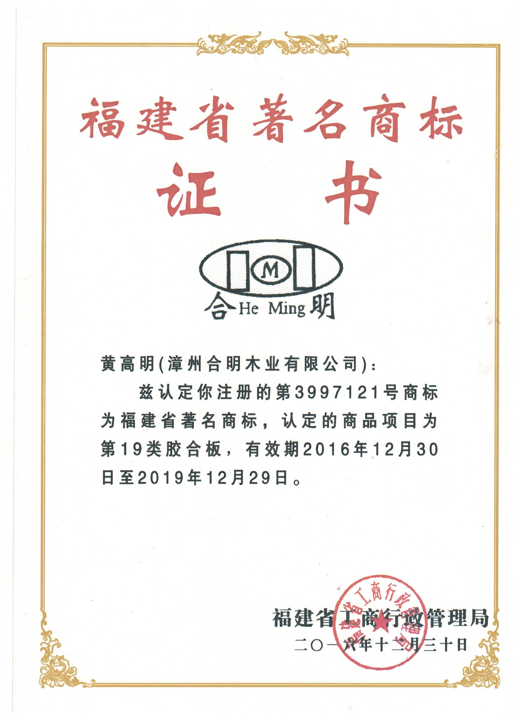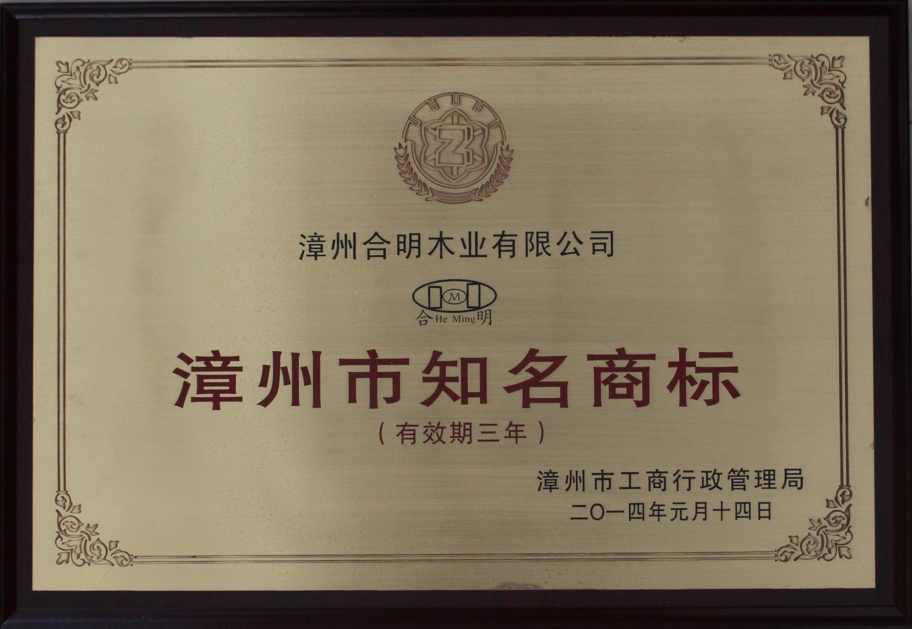 7、合明模板經(jīng)漳州市工商局認定,成為漳州市知名商標。