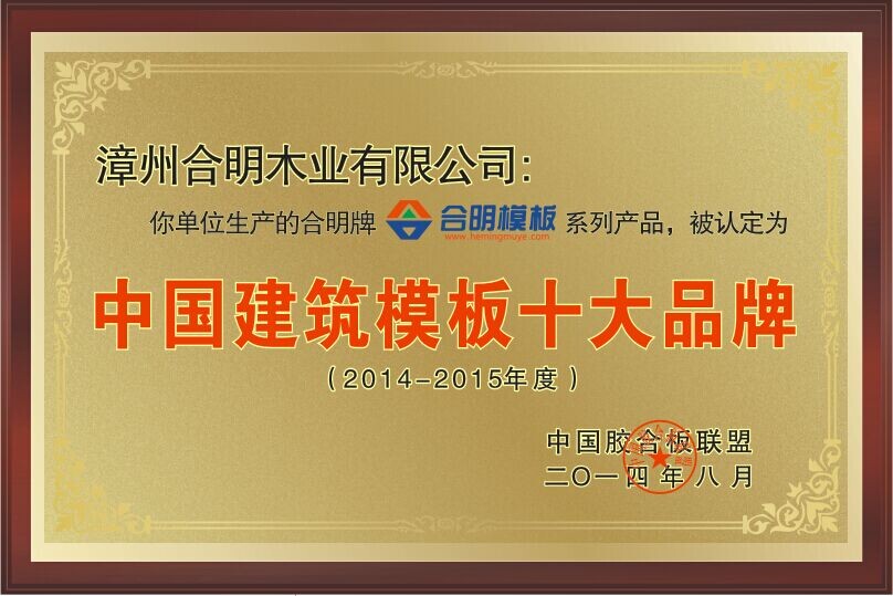 4、合明模板連續(xù)三年獲得“中國建筑模板十大品牌”殊榮。