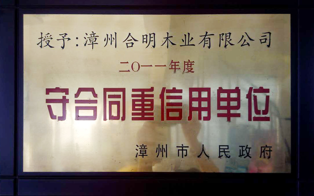 10、合明木業(yè)榮獲“守合同重信用單位”,該榮譽由漳州市人民政府頒發(fā)。