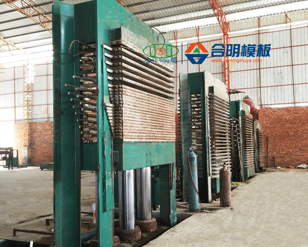 6、冷壓。排列好的模板層進行冷壓,使膠板很好地結(jié)合起來,使各層板充分定型不跑位。