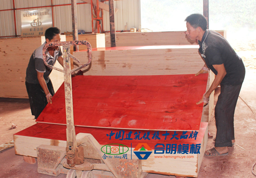為保證成品模板的質(zhì)量,合明模板后續(xù)翻板檢查、磨邊噴漆、打包包裝等工序均由人工進(jìn)行操作,保證出廠(chǎng)的每張模板都是精品。